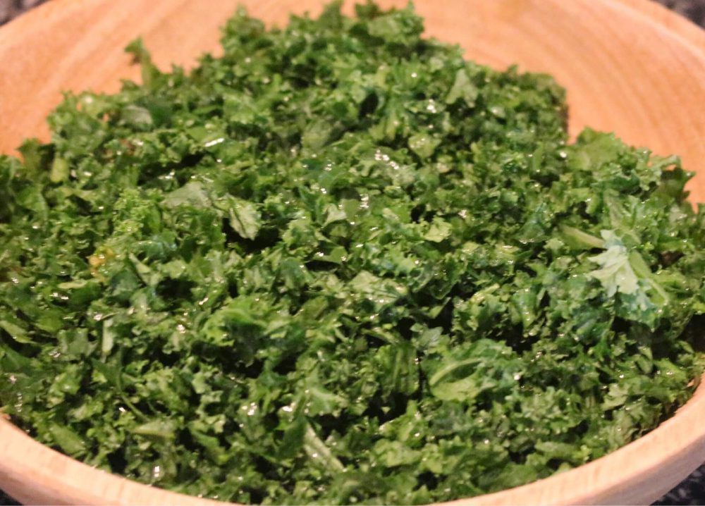 Vers gesneden en gewassen boerenkool. Klaar voor in de pan.