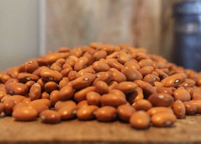 Bruine bonen met spek en stroop. Pure nostalgie. Een zeer voedzame peulvrucht. Geteeld in Lutjewinkel.