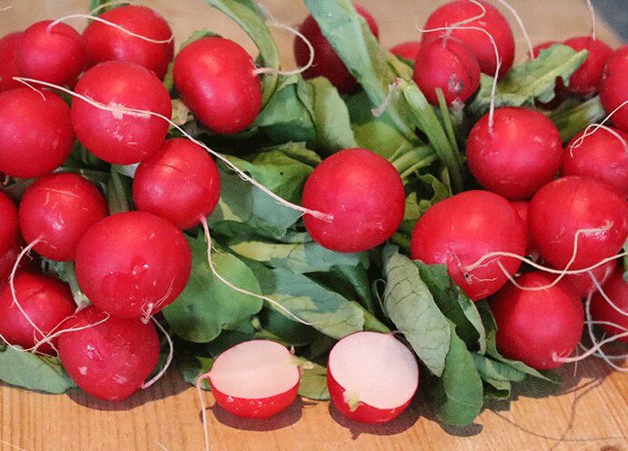 Radijsjes hebben een licht scherpe smaak. De scherpe smaak laat zich goed combineren met een zure dressing van azijn of citroensap. Het radijsje is een ideale snoepgroente.